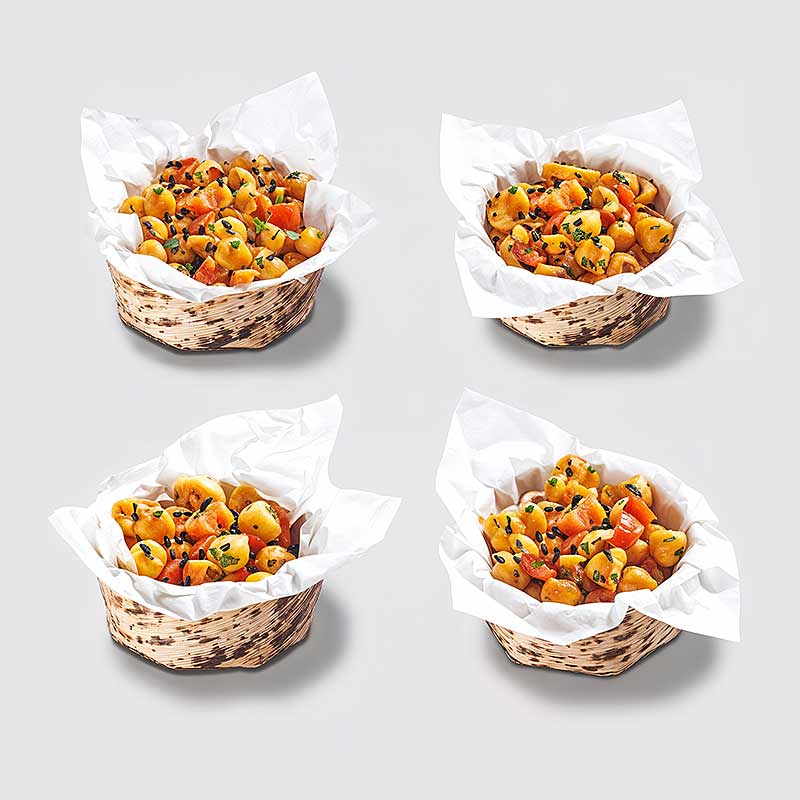 Vegane mini Poke Bowl mit Kichererbsen, Karottensalat mit Ingwer und Hummus (4 Stück)